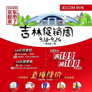 伴随着线下购物秒杀活动的展开,“一年仅此一周”的线上促销周也将火热进行。9月18日至9月24日,上京东超市,可参与满199减100、1元抢购、万件商品低于超市价、新人礼劵等等优惠活动,更有包括衣物清洁、纸品湿巾、奶粉、洁面乳将拥有吉林专享价。
