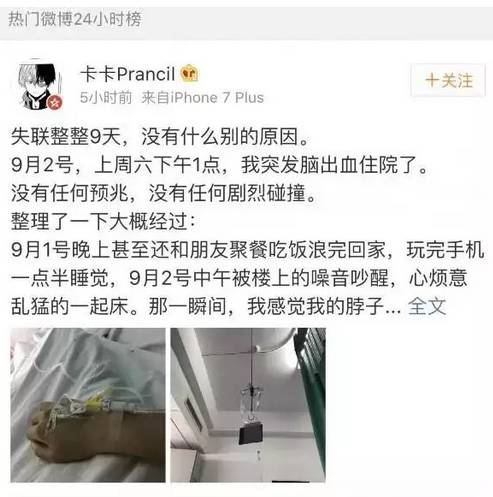 划重点:一、本来是个身体正常的年轻人;二、因为长期熬夜、工作压力大、运动少,导致脑溢血;三、虽然捡回来一条命,但后遗症还是有的。