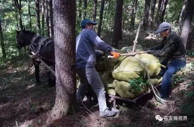 义和村打松塔的团队有14人,8个负责爬树打塔,4个负责捡松塔,还有两个负责用马车将成袋的松塔从山上运到山下。打塔人一天收入500元,可一年只能工作25天左右。打塔人每天早6点开始工作,一直到下午4点半才下山回家,饿了就在树林里吃点煎饼之类的干粮,中午只能躺下休息半个小时。