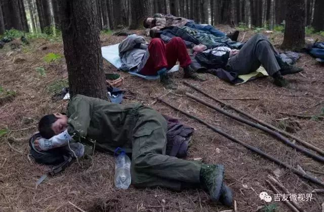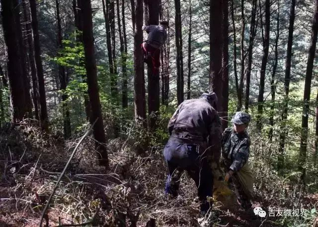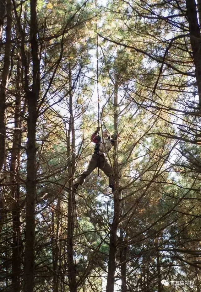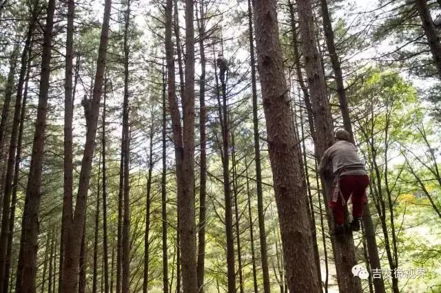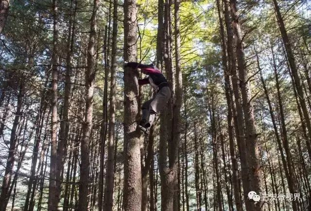 短暂休息过后,又要爬上另一棵寻觅松塔的踪影