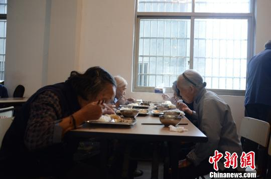老人们津津有味地享用着午餐 程哲供图