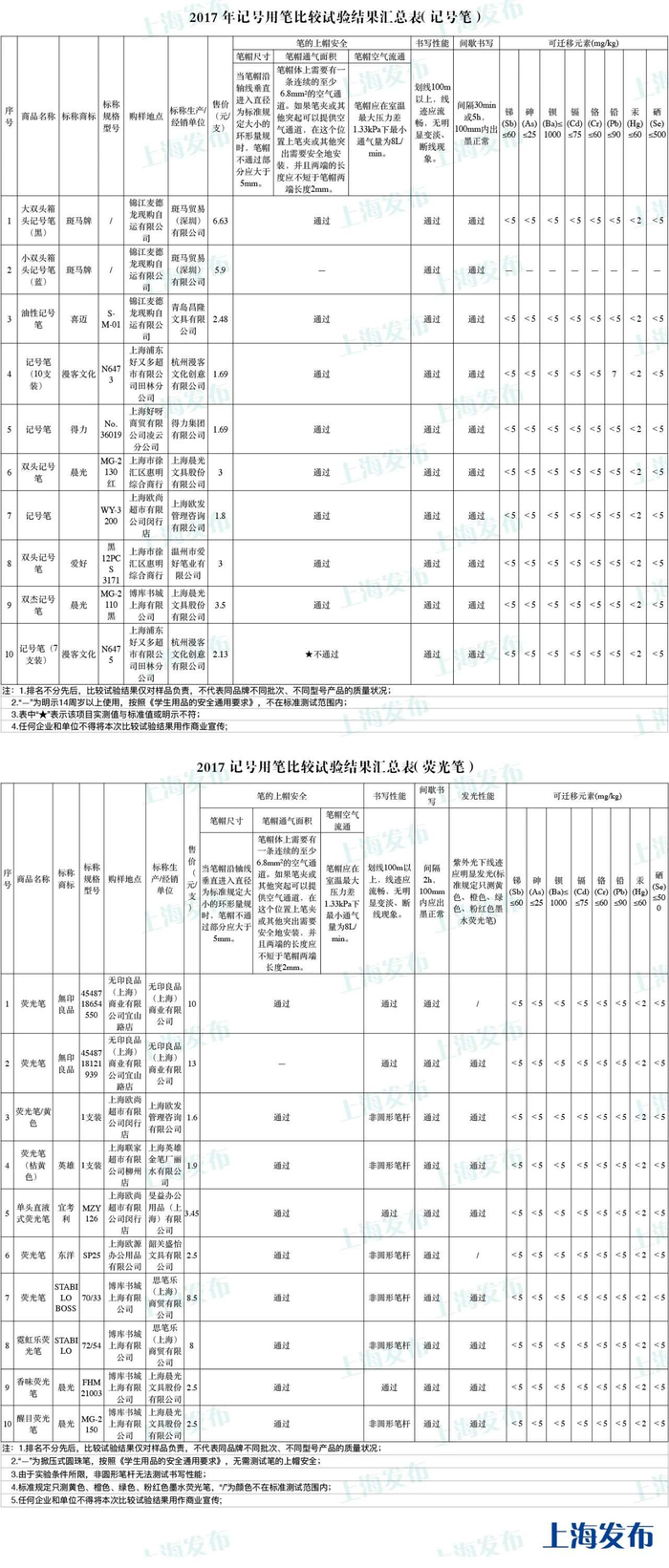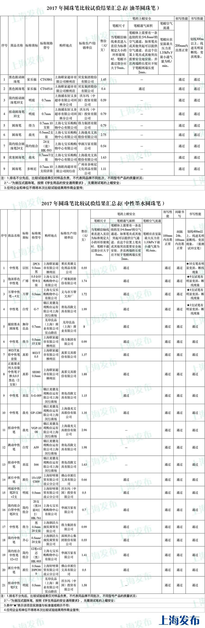 圆珠笔和记号用笔是日常学习和办公的必备用品之一,其各项性能表现如何?使用安全是否过关?上海市消保委发布了本市流通领域的50件圆珠笔、记号用笔样品比较试验结果:30件圆珠笔样品中4件样品的书写性能表现不佳;20件记号用笔样品中有1件样品的笔帽安全未通过测试要求。详见↓