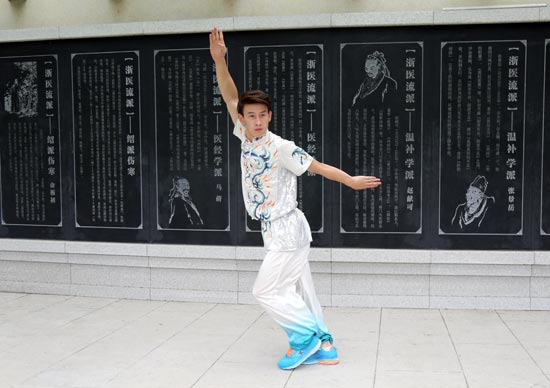 查苏生表演武术动作 浙江科技学院 周如珊/摄