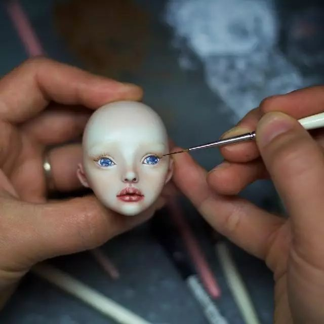 为了让娃娃展现逼真的神情,Marina拒绝使用死板的玻璃珠子,而是选择一笔一笔描画出娃娃充满灵性的眼神。