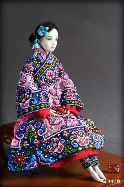 Marina曾以中国古代女子为灵感创作了一系列作品,命名为“皇帝的女儿”。这些娃娃长着中国人的面容,带着清朝风格的旗头,而她们的脚却让人大吃一惊↓↓ Marina为这些娃娃做了旧时妇女缠足的小脚。