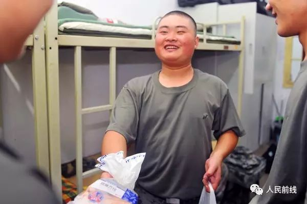 新兵李冰辉,是个小胖墩,最大的爱好就是“吃”。从家里出发前,曾担心部队伙食不好,父母更是为其买了一大堆零食。结果,当吃完第一顿饭后,李冰辉就认为自己和父母都想多了,于是他将零食分给了战友。