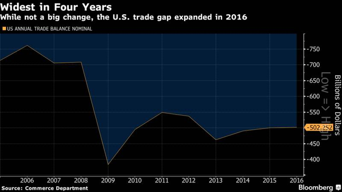 ▲2013年以来,美国贸易逆差不断增长。(数据来源:美国商务部)