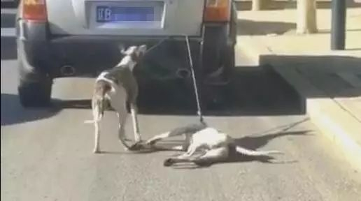 视频显示,SUV尾部用两根绳子拽着两只小狗,随着汽车启动,小狗被拖拽着奔跑。其中,一只体型稍小的狗体力不支倒在地上,此时SUV停了下来。拖着小狗奔跑的车辆,悬挂着辽B牌照。