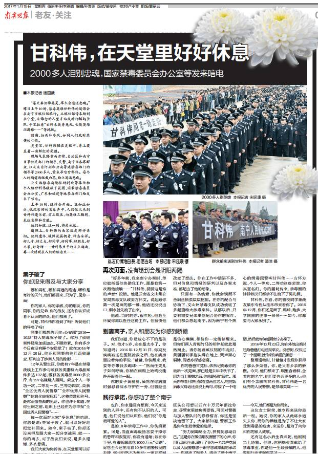 我们曾报道过的甘科伟,一位“80后”已故缉毒民警。他的追悼会上,那数千人悲痛的哭泣声已渐行渐远,但英雄不曾远去,甘科伟的名字,在我们的心中烙上了一座永恒的丰碑。