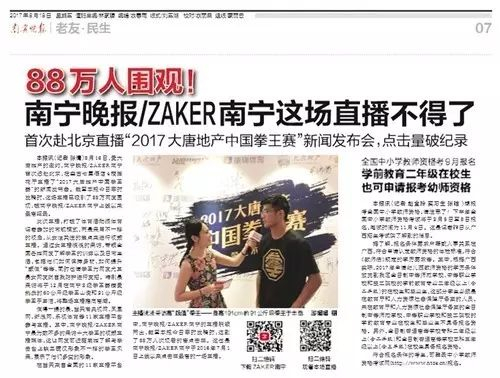 与此同时,截至8月18日,南宁晚报/ZAKER南宁共进行了69场直播,其中,8月16日的一场直播吸引88万网友围观。