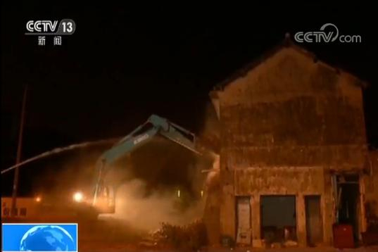 央视记者 俞翔:在我身后这片将近1000平方米的废墟上头,就是原先泸亭北路238号的旧址,正是因为这栋老房子,这一段双向四车道的泸亭北路在这无奈被缩减成为了两车道,给周围的居民带来了极大的不便。2017年9月18日,凌晨,这一栋矗立了14年之久的老房子,终于被拆迁了。