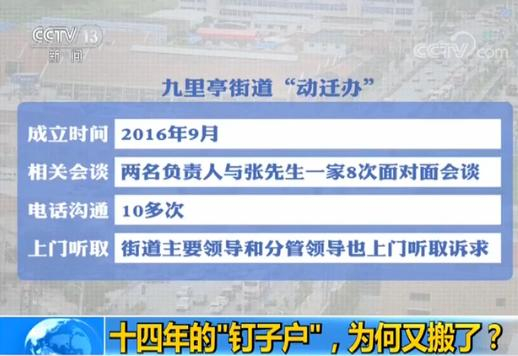 董倩:这件事情的解决恐怕很大程度上离不开时间这样一个最有力的要素,但是在14年的过程中,最终让双方能够商量出一个结果的,无非就是两个字,一个理,一个情。理也就是要用法理和道理来说服张先生一家,最后他们认这个理了,再说这个情字,其实在短片中刚才也反复提到,张先生一家不是不讲理,而是当地政府的一些具体人员在办这件事的时候,觉得自己很牛,张先生一家就不大认可他们的这种工作态度,我不是不愿意搬,但是我不服这口气。到了2016年的时候,九里亭街道有了一个动迁办,两名负责人和张先生一家八次面对面的会谈,电话沟通了十多次,而且街道主要领导和分管领导都上门听取诉求,在这种以情动人的情况下,张先生一家觉得行了,我这口气出来了,最后可能也导致了今天这样的一个协商结果。最终14年,虽然有时间解决的成分,但是最终能导致这个事情向解决方向走的原因您觉得是什么?