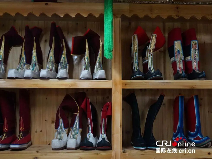 拥有一双藏靴曾经是不少藏族人家的梦想。藏靴采用牛皮、牛筋为原料,加上藏氆氇为装饰,手工制作而成,色彩鲜艳、防潮防冻、经久耐用。藏靴制作工艺距今已有1000多年的历史,是藏民族传统服饰文化中一颗璀璨的明珠。