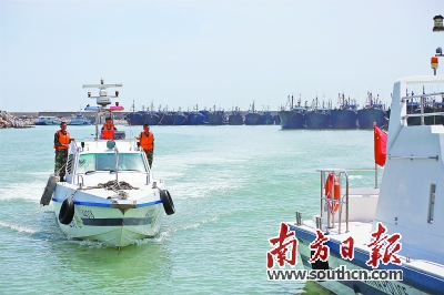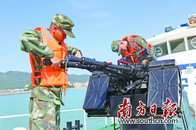 在边防船艇上,记者也体验了一回海上执勤,在海上行驶的船艇的确比停在港湾里的船艇要晃得多。“刚入伍那会,在船上会头晕,现在都习惯了船艇生活,有时回到陆地反而觉得头晕。”来自广东肇庆的李岢峰回想起军营生活,脸上写满了不舍。李岢峰是家中的独子,出生于1996年,在部队中他负责机械检视、甲板保养、艇炮的使用和维护以及系防风水鼓,一直都非常热爱自己的战位,但因为需要照顾家庭,只能在满服役期后选择退出现役。