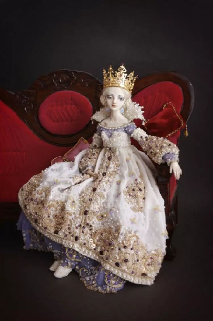 脸由素瓷手工烧成,面料考究,工艺精湛的霓裳和巴黎高级定制礼服如出一辙,瑰丽的珠宝首饰也是渗透浸俄罗斯丰厚的文化底蕴,美得仿如诗歌和神话。