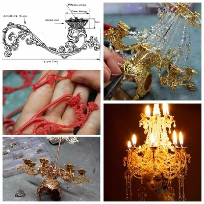 整体流程大体是:设计造型,手工烧制陶瓷作为娃娃的原胚,(其中烧制失败的不计其数)。细节描绘到极致,微雕出肌理,手绘上彩,缝粘毛发。