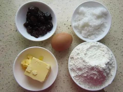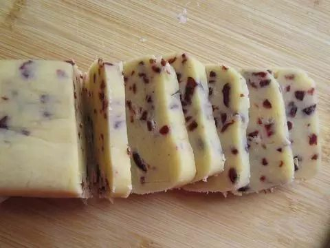 原料主料:低筋面粉115g 蔓越莓干35g 黄油75g