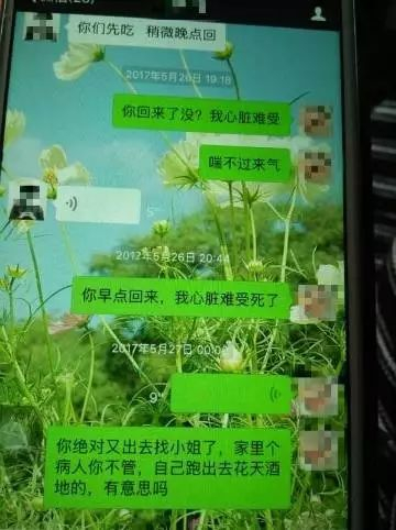 邵青再次哭诉:“我的心脏都快疼死了,你还有心情在外面吃饭,我死活你管不管了,你绝对又出去找小姐了,家里个病人你不管,自己跑出去花天酒地的,有意思吗?”