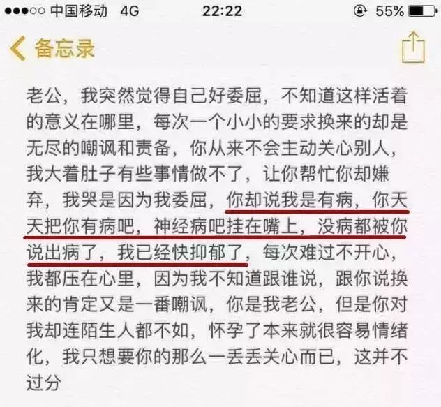 女孩怀孕和月子里很容易抑郁的,言语攻击和冷落就是一把无形致命的刀。可惜孩子了