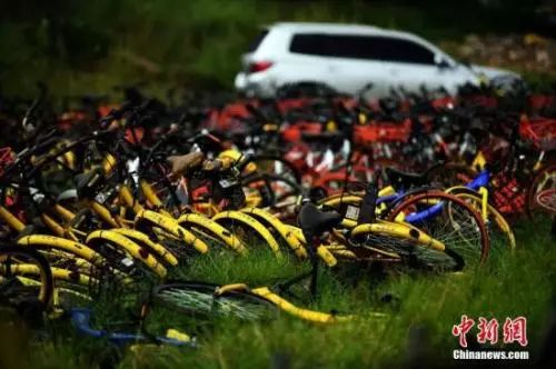 资料图:堆积如山的共享单车。中新社记者 李进红 摄