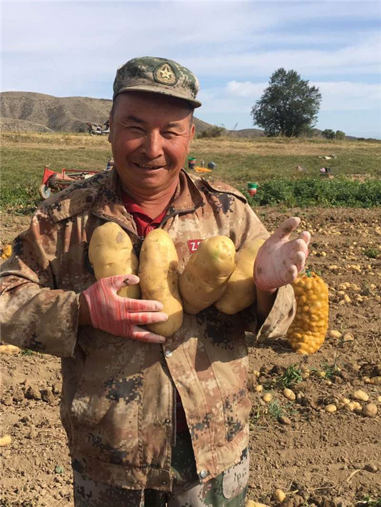张仁兵说:“我们家今年种了25亩新品种土豆,种上以后涨势特别好,这两天我们开始收获,从收获情况看每亩地能够产3.5吨左右,每公斤按1元计算,这25亩地都能收入8.5万左右,我们两口子非常高兴。”