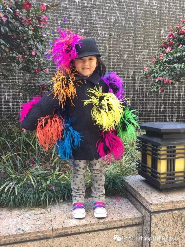 这套“超女”服,小馒头穿去参加幼儿园的六一节活动,紫、黄、粉、绿的撞色搭配可都是小馒头的主意哦!