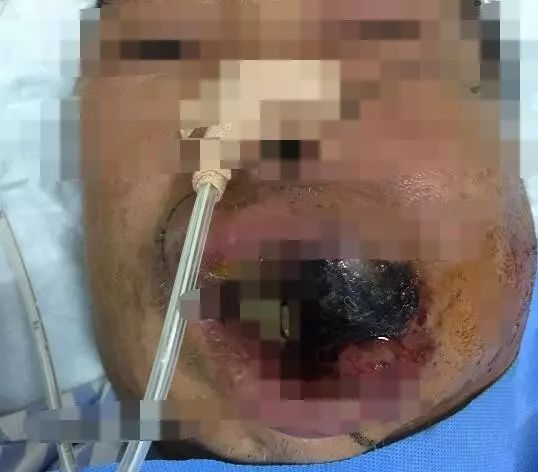 急诊医生接诊后,心里一惊,当时杨大叔的情况已经很严重。他的左侧嘴唇整个红肿外翻,跟香肠嘴一样,再往里看口腔,更糟糕,正不断往外流浓水。