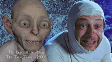 其实一开始,《指环王》的导演彼得·杰克逊想用动画方式呈现咕噜,但瑟金斯提出用动作捕捉技术,还表演了一段,这让导演下决心敢为人先,制作了超过250种不同的脸部数字模型来进行拍摄。但由于当时技术有限,最后导演只能捕捉到瑟金斯的动作和一些基本表情,细节处还是要借助动画手段做大量修正。