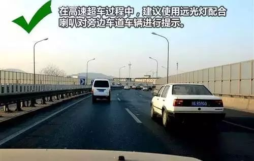 ●3.高速超车时配合灯光使用喇叭提示旁边车道车辆。