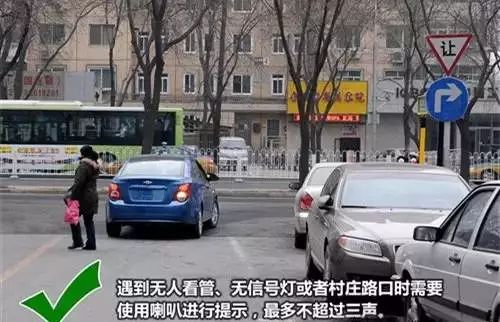 ●1.在无信号、无人看管路口建议使用喇叭提示,最多三声即可。