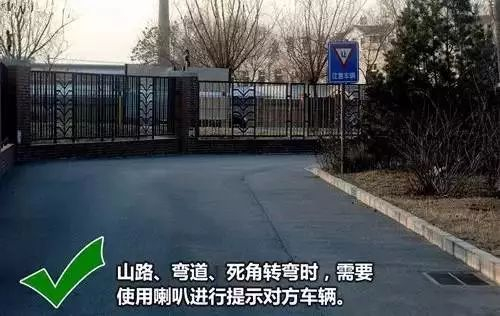 ●2.山路、弯道、死角(无辅助镜的路口)建议使用喇叭提示,最多三声即可。
