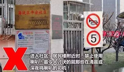 你是否有在周末睡懒觉时被汽车喇叭声惊醒过的经历?是否有过在车库中被巨大的喇叭声惊到过的经历?这都是错误使用喇叭的方式。很多司机在进出医院、小区、隧道、车库时,可能都没有注意到禁止鸣笛的警示牌,大多数场所都会有。小区、医院、学校都是需要有宁静的环境,车库和隧道很容易产生回声,所以希望大家能够在这些场所正确的使用喇叭。