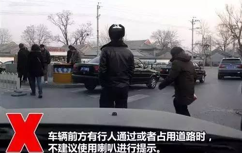 ●2.车辆前方或路口有行人、非机动车禁止使用喇叭提示