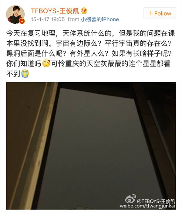 粉丝之所以要送上这份有点特殊的礼物,只因王俊凯两年前的一条微博。