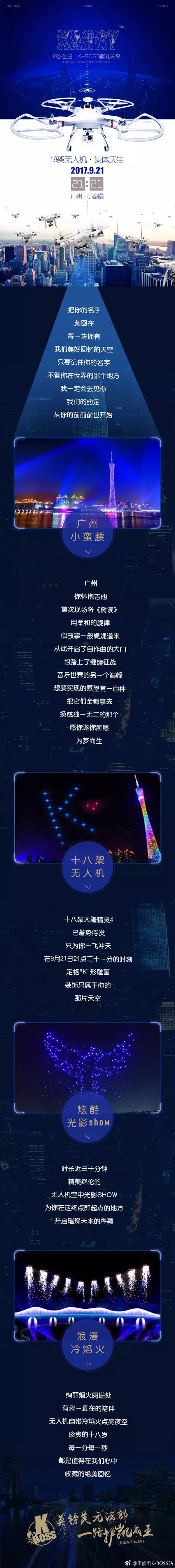 除了十八颗星星,K-Boss还为爱豆的十八岁准备了更逆天的礼物,包括18架大疆无人机组成的雕画,以及助养海洋中的十八种濒危动物公益应援。