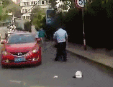 无奈之下,执勤交警立即拨打报警电话,随后该男子立马小跑离开现场,而副驾女子为阻止执勤交警控制该男子,选择从交警后背拦腰抱住,并将民警摔倒在路基石上。