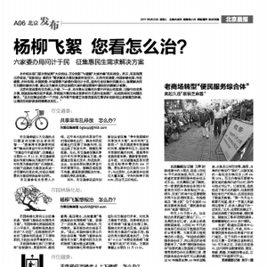 目前园林绿化部门主要采取“控制源头、更换树种、疏枝修剪、高压喷水、注射激素”等措施综合治理杨柳飞絮,获得了一定效果,但是,“绿色的、可持续的、甚至根治的办法还不多。”因此,市园林绿化局公开向社会征集“杨柳飞絮综合治理技术方案”,希望市民为北京的杨柳飞絮治理出谋划策。