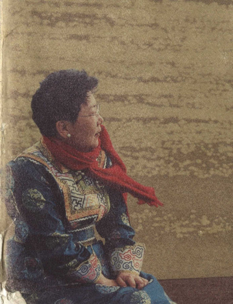 精致淡雅的妆容,微微发福的身材着一身素净的黑色衣裙,颈间一条黑白花色的围巾让黑色变得生动。她用不疾不徐的语调讲述着近30年来对父母的故乡内蒙古的追寻,数次因哽咽而凝滞,又迅速调整情绪,时而幽默甚至调皮,流露出性格中活泼的一面。