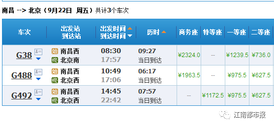 此前票价G488次南昌到北京的“前身”为G489次,全程需要8小时18分,票价方面,最便宜的二等座票价为806元