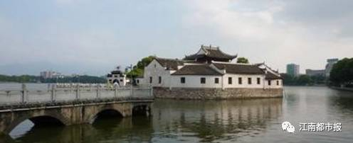 烟水亭,相传为三国时名将周瑜的点将台故址。唐代诗人白居易始建亭湖中,取其《琵琶行》诗句 “别时茫茫江浸月”,称“浸月亭”。宋代理学家周敦颐在九江讲学时,又在湖堤上另建一亭,取“山头水色薄笼烟”诗句,名“烟水亭”。随着时间的推移,两亭皆毁。至明末,重建烟水亭于浸月亭旧址。
