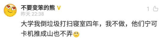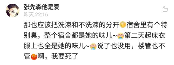 除了睡眠因素之外,爱干净的同学也希望能和不爱干净的同学分开住,说实话谁能受得了在大学宿舍当四年无偿的保洁大叔保洁阿姨呢,谁能受得了宿舍里成天臭气熏天呢?