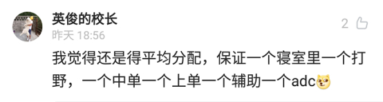 不打游戏的同学觉得和喜欢打游戏的同学住一间也实在是难以忍受,但是打游戏的同学觉得并不能这么草草分到一间就算了,应该要按照习惯玩的游戏角色来分宿舍,免得舍友们互相抢英雄。