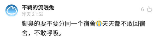 还有一些角度很刁钻的排斥,玩不玩狼人杀,看不看快手(竟然还有大学生在宿舍看快手?)是不是抠门,开不开夜灯,吃饭是不是吧唧嘴都成了大学生想要和舍友分开的理由。也有同学认为该按照星座分……
