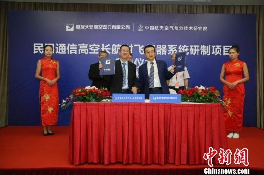 19日在北京开幕的第十七届北京国际航空展现场,中国航天空气动力技术研究院与重庆天骄航空动力有限公司签署了民用通信高空长航时飞行器系统研制项目合同。