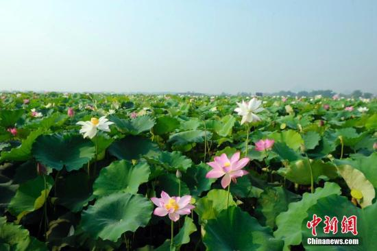 资料图 连片荷花开得正盛。 蒋雪林 摄