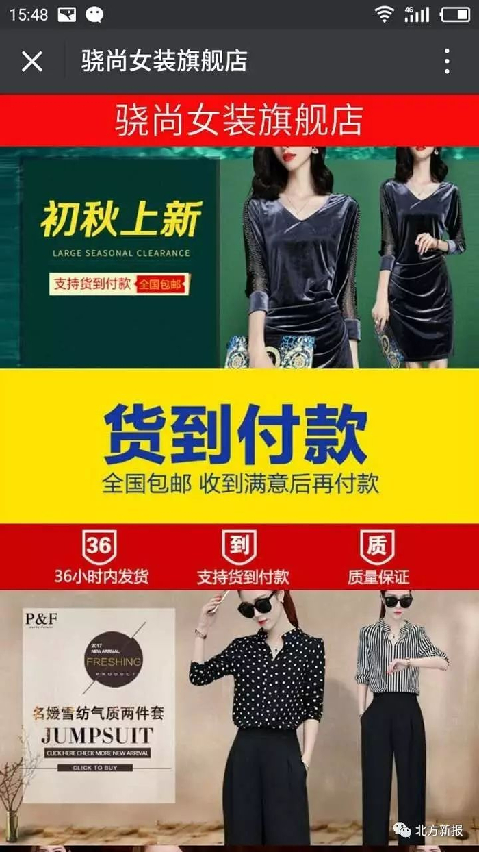 据介绍,9月2日晚上,孙女士在微信上浏览文章时,从一篇文章的文尾链接处看到了一则“骁尚女装旗舰店”的广告,由于广告动图所显示的衣服特别漂亮,孙女士就点开了页面。