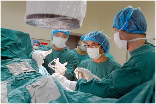 骨科专家操纵机器人为患者手术