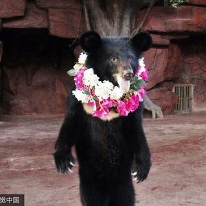 动物们戴花环举牌子 为熊猫“盼盼”举行哀悼会