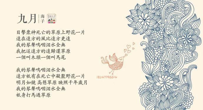 远在远方的风,比远方更远。这是海子诗作《九月》中的一句。曲的原作者是张慧生,经过周云蓬的改编和演唱之后,这首诗、歌得以被更多人熟知。这首诗与歌,让人惊叹地连成一体,几乎难以分辨究竟是谁塑造了谁。