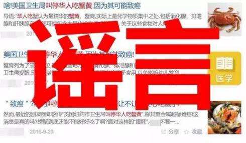 真相:一篇名为《美国卫生局叫停华人吃蟹黄,因为其可能致癌》的文章广为流传。其实纽约市卫生局的消费建议并非针对螃蟹或蟹黄,而是由于纽约当地工业污染严重,建议不要食用或有限食用,在其他地方可能并不适用。